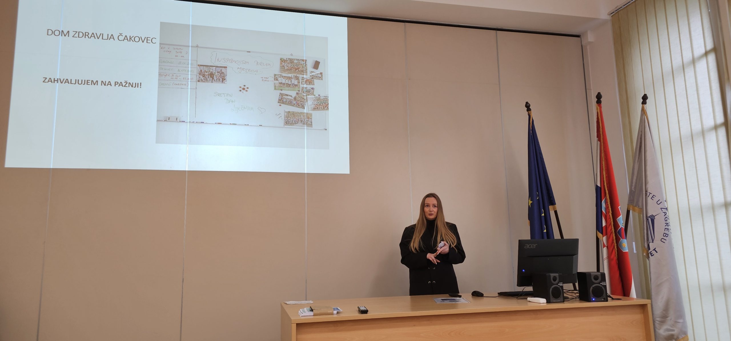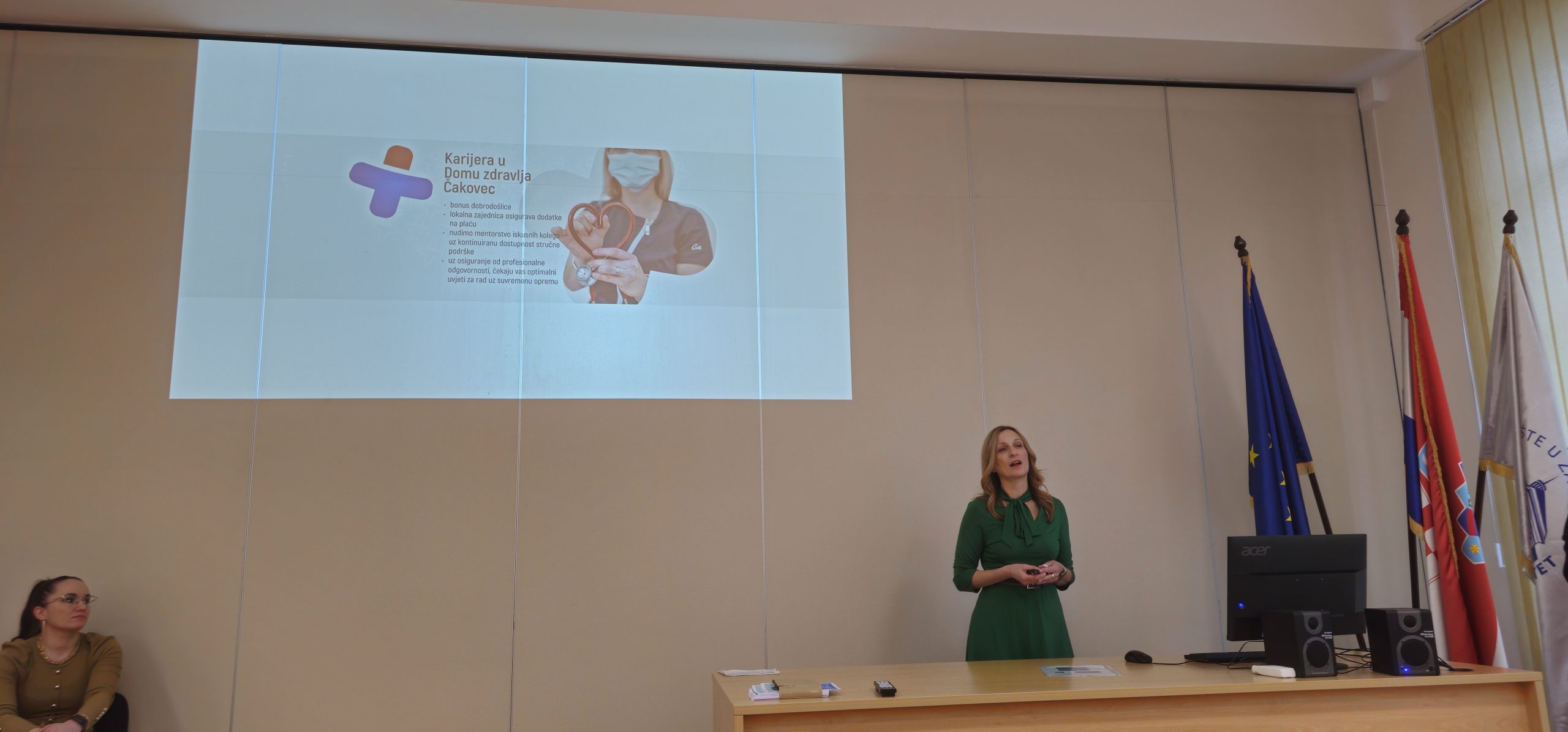 Predstavljanje je započelo izlaganjem ravnateljice dr. Pleh o Domu zdravlja, o djelatnostima koje se u njemu obavljaju, kao i o mjestima i uvjetima rada, trenutnim bonusima Međimurske županije i lokalne zajednice. U Domu zdravlja Čakovec mladim liječnicima nudi se i mentorstvo iskusnijih kolega uz kontinuiranu dostupnost stručne podrške. U ordinacije Doma zdravlja konstantno se ulaže te se uz moderan namještaj i najnovija računala nabavlja i vrhunska medicinska oprema koja olakšava rad. Ravnateljica je spomenula kako Dom zdravlja Čakovec stipendira studente 5. i 6. godine medicine te poziva sve zainteresirane buduće stipendiste da se jave na mail: uprava@dzck.hr