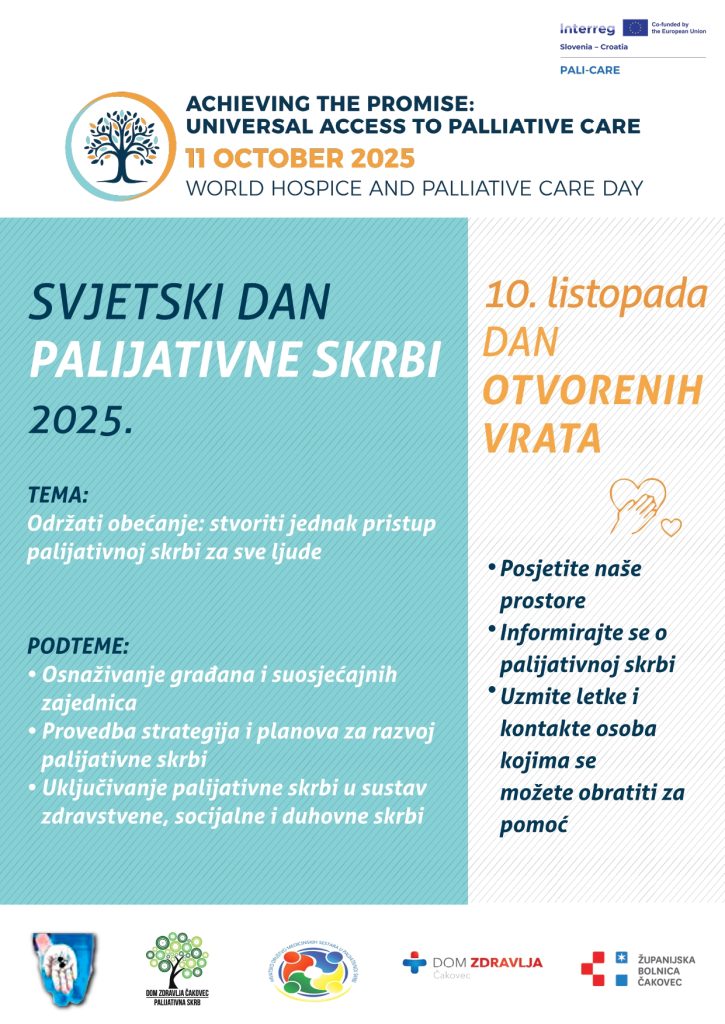 dana 10. listopada 2025. godine održat će se Dan otvorenih vrata povodom Svjetskog dana palijativne skrbi u udruzi “Pomoć neizlječivima” (u sklopu Katoličkog Doma), Domu zdravlja Čakovec i Županijskoj bolnici Čakovec.